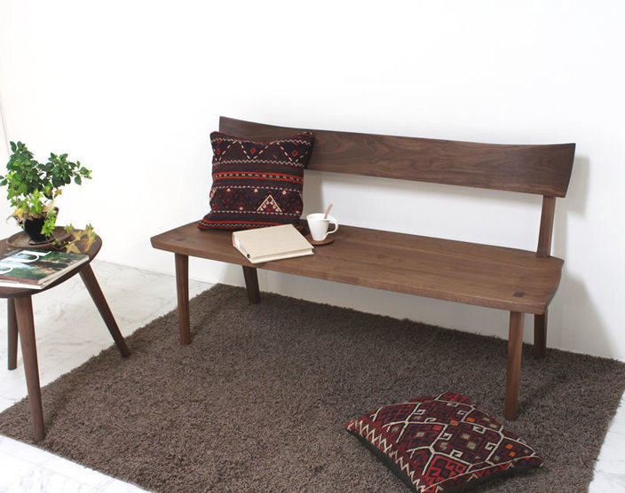 無垢の素材をふんだんに使用した背付きベンチ「アントリア」。