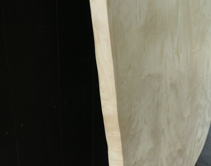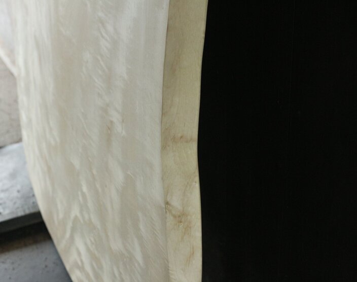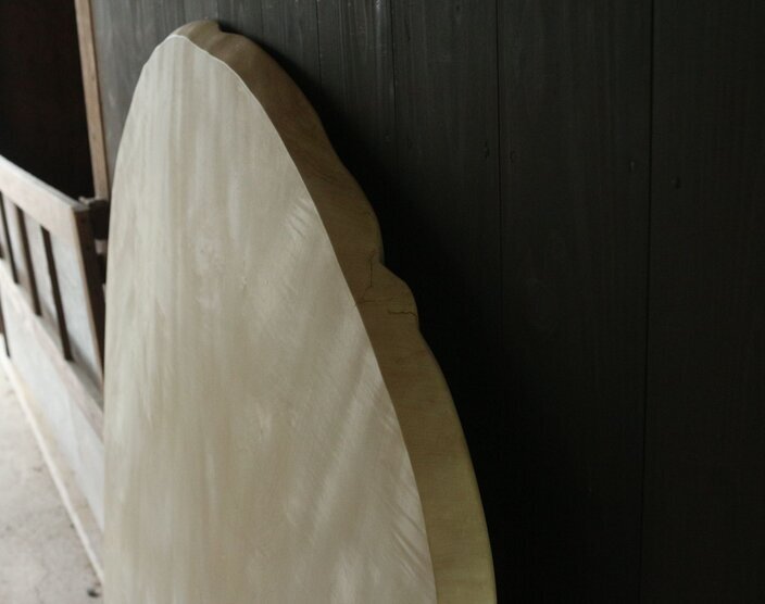 なめらかな形に削り出した、栃の一枚板です。白い木肌は品が良く、お部屋を明るい印象に。大きめの座卓としてもおすすめです。