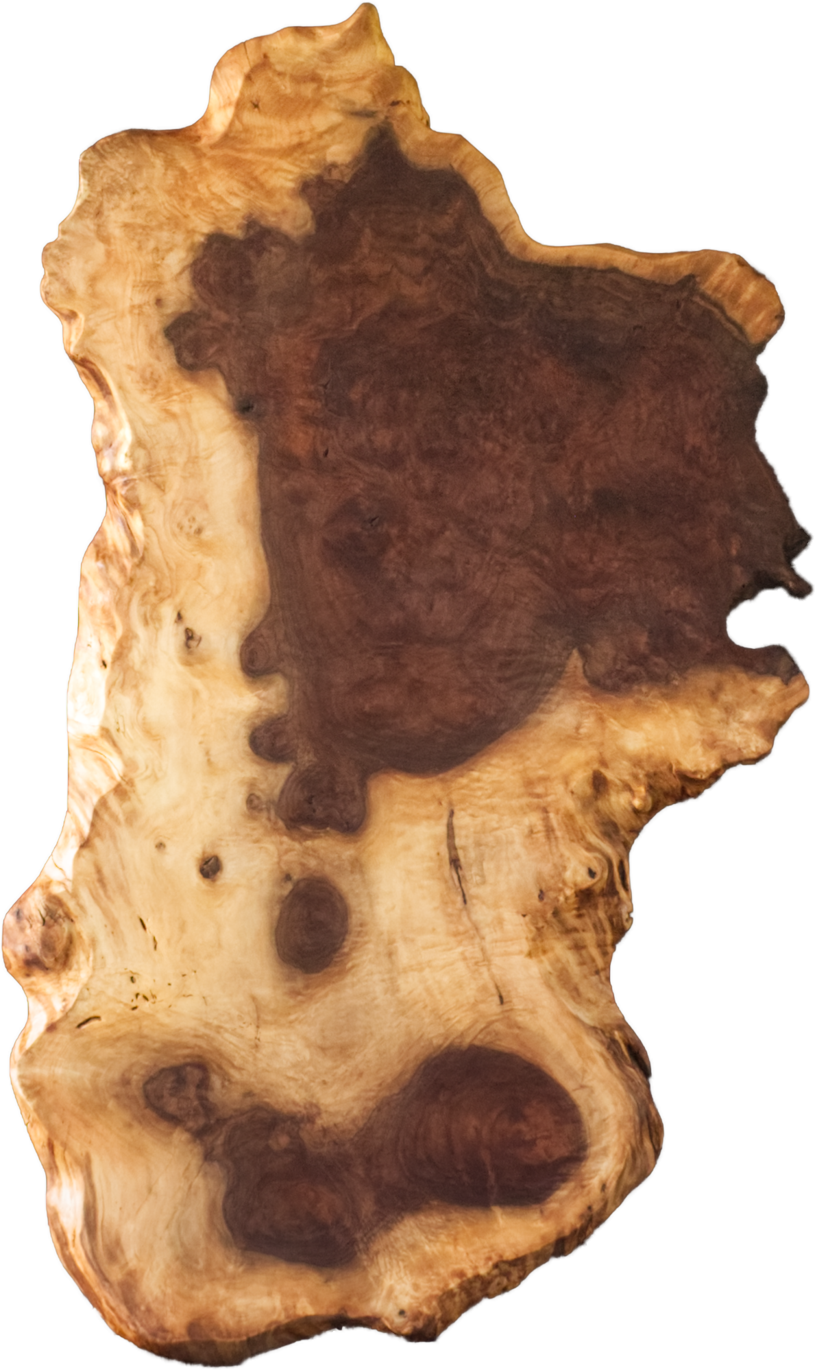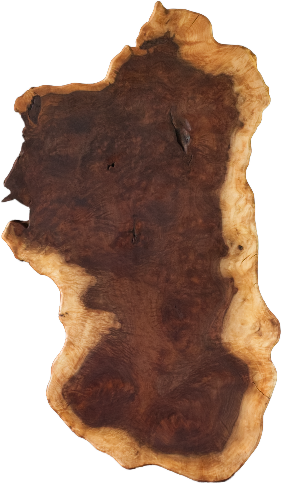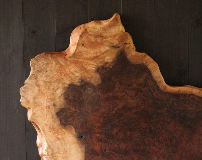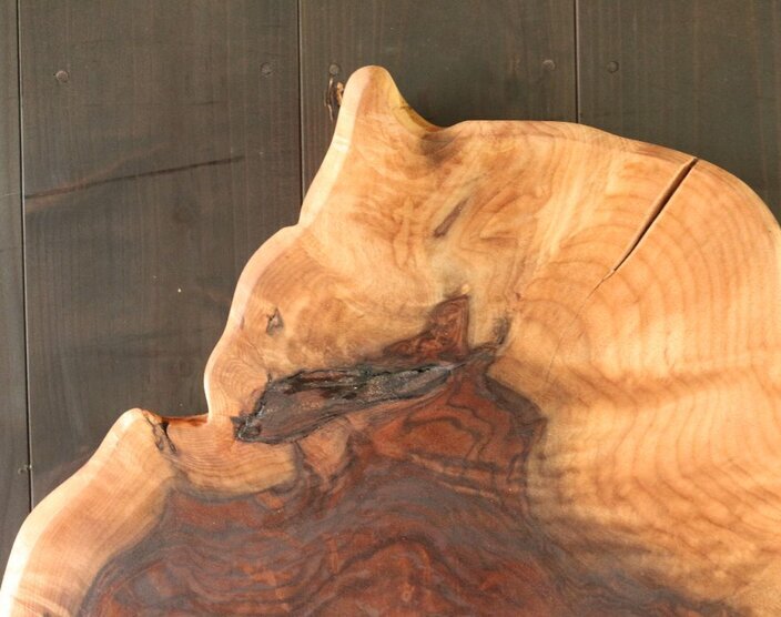 自然な形の一枚板を探している方にお勧めしたい一枚板です。クラロウォールナットならではの、拒絶反応によるコブのダイナミックさを存分に活かしました。一枚板だからこそ味わえる、美しい造形です。