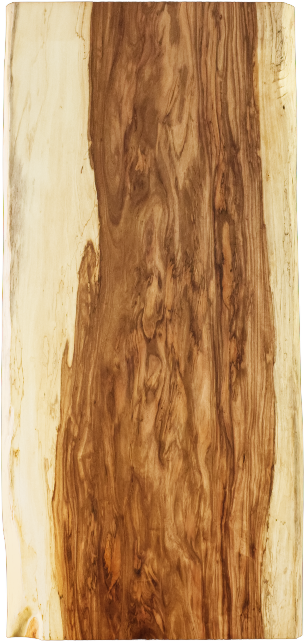 タリーという木はご存じですか?マメ科のアフリカ材で、非常に固く加工が困難な為、あまり一枚板としては流通しません。複雑な木目と、はっきりとした心材と辺材のコントラストはとてもユニークです。経年変化で深い色合いになっていくので、自ら育てるアンティーク家具としてお楽しみ下さい。