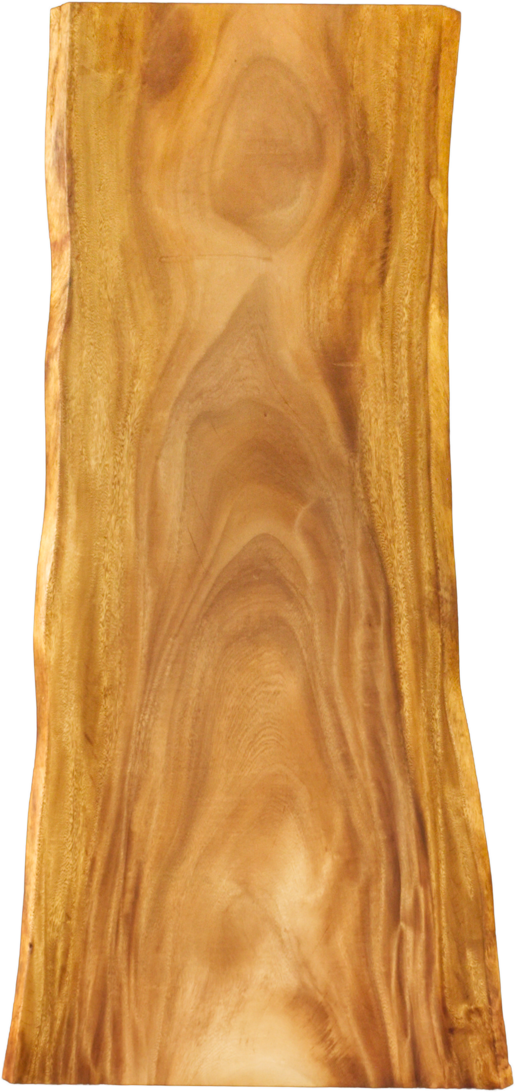 マーブル模様が特徴的なモンキーポッドの中でも、白味が多めの一枚板です。炎の揺らぎのよいうな木目が印象的です。耳部分は心材に合わせて着色加工を施しています。