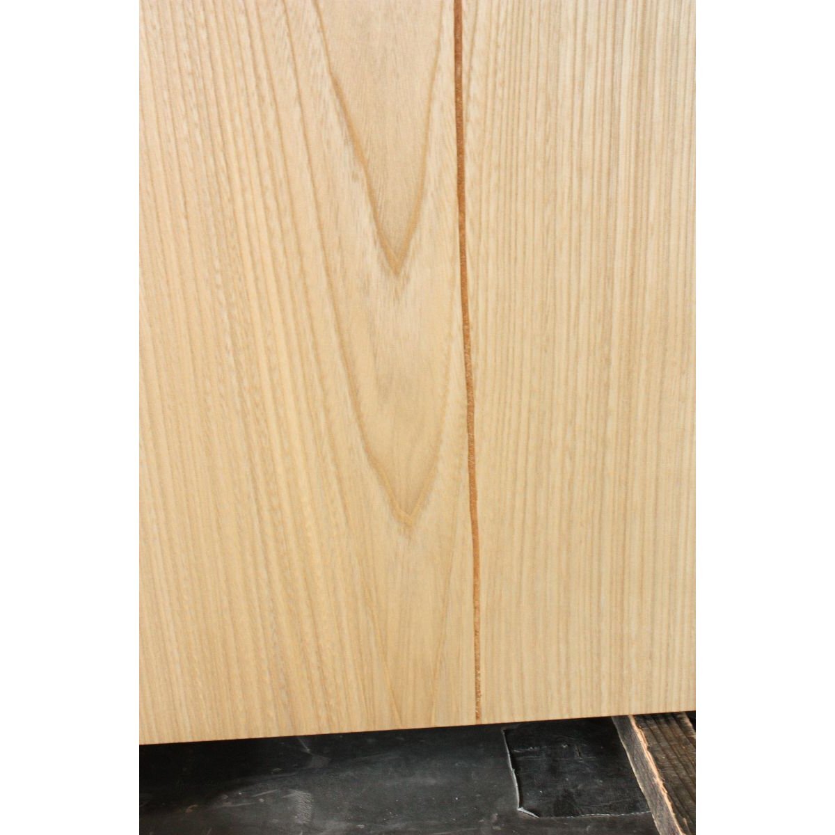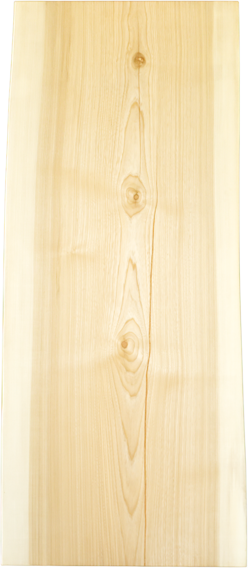 白く明るい栓の一枚板です。欅のような杢も美しく、大迫力の厚みは69mm。少し細身で、幅の狭いお部屋にも設置しやすい一枚板です。