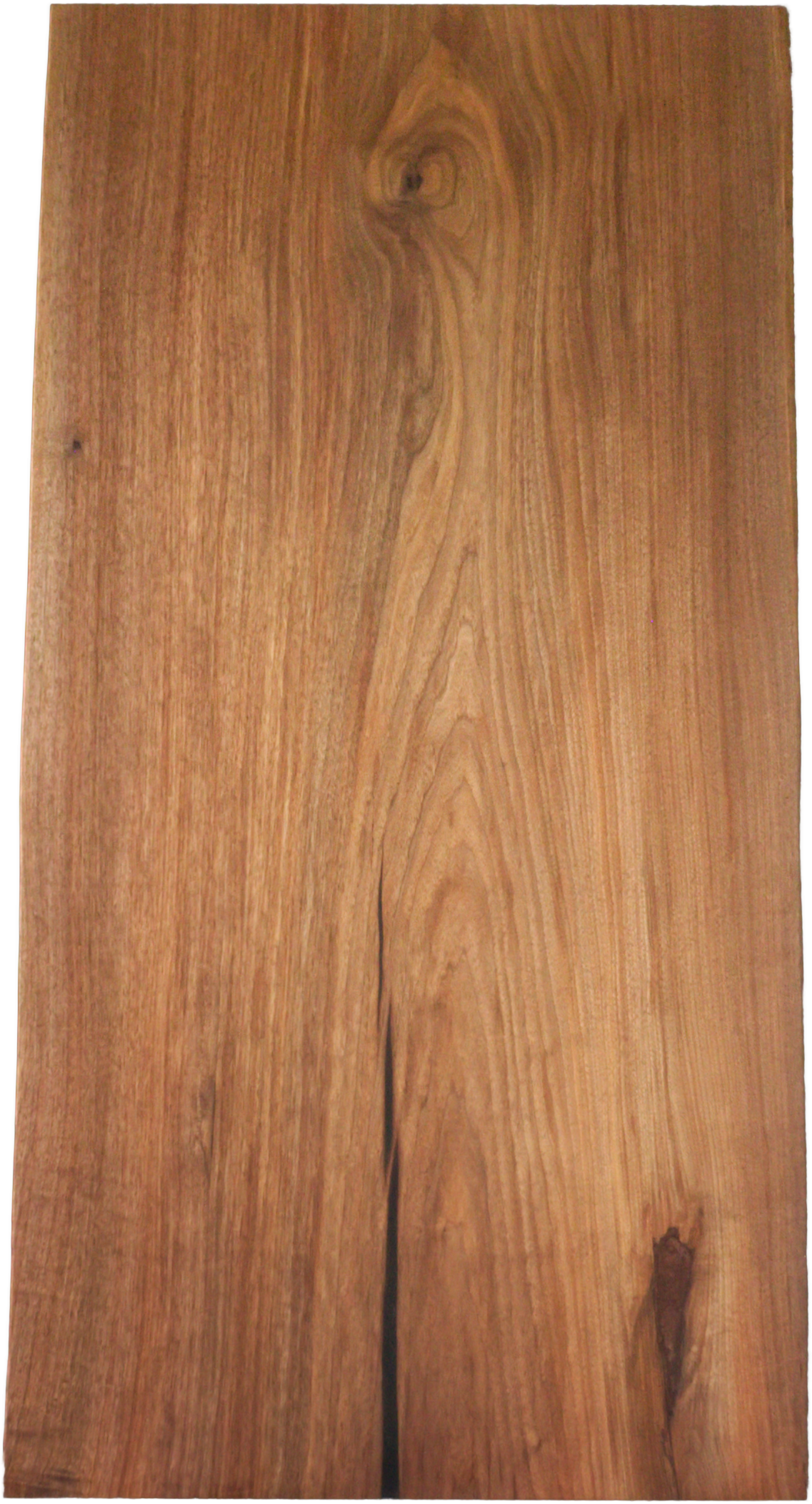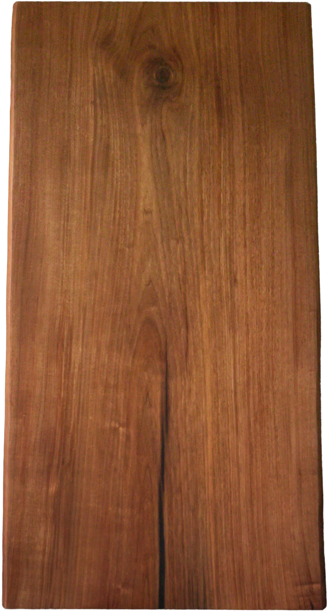 すっきりとした杢に節と割れが良いアクセントになっているウォールナットの一枚板です。側面は自然の耳を職人が再現した人工耳。割れ部分はレジンで埋めており半透明になっています。