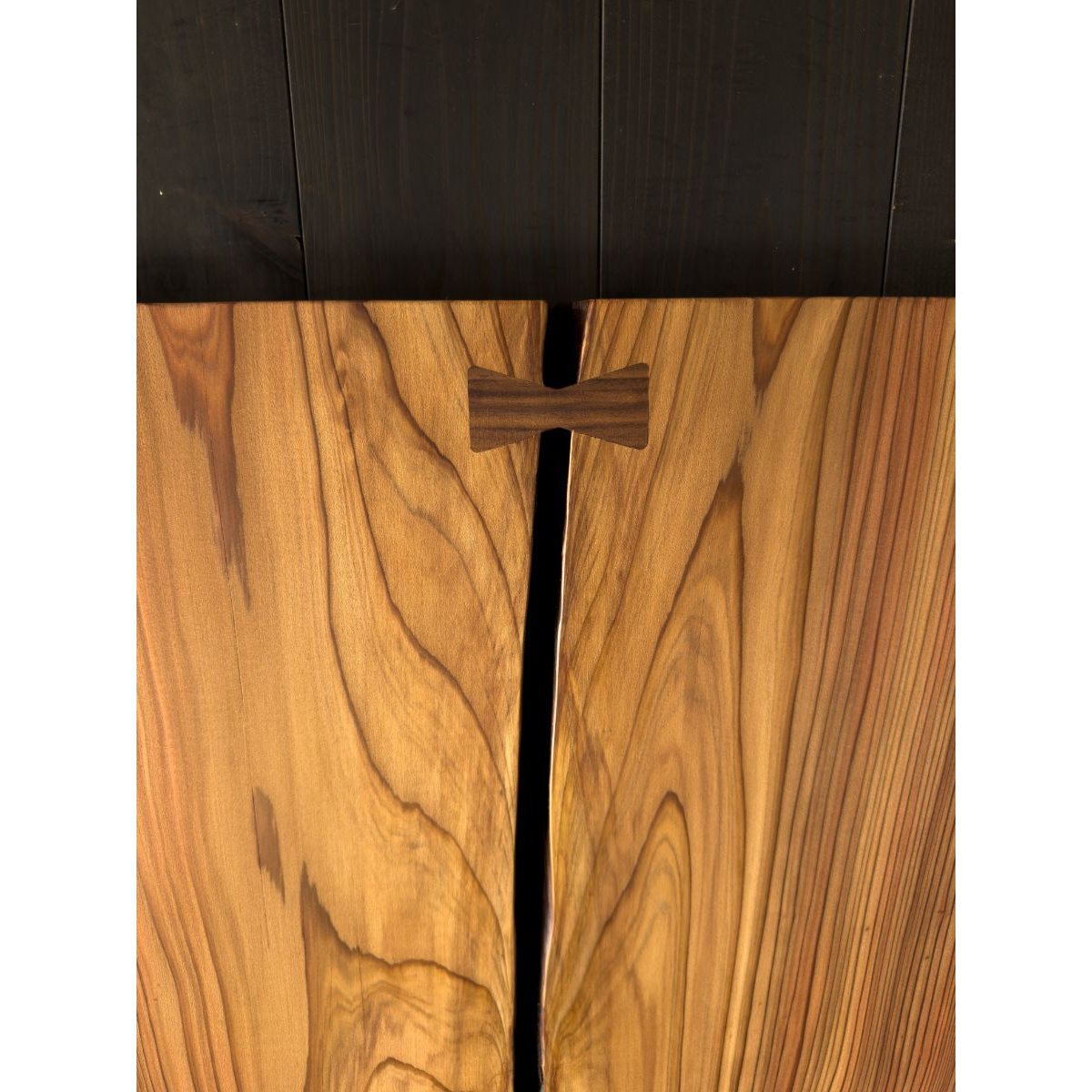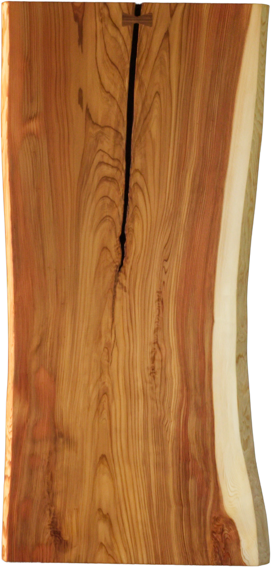 割れを活かした自然味溢れるデザインの杉の一枚板です。杉の中でも杢が際立ち、浮造りにする事で、感触もお頼み頂けます。