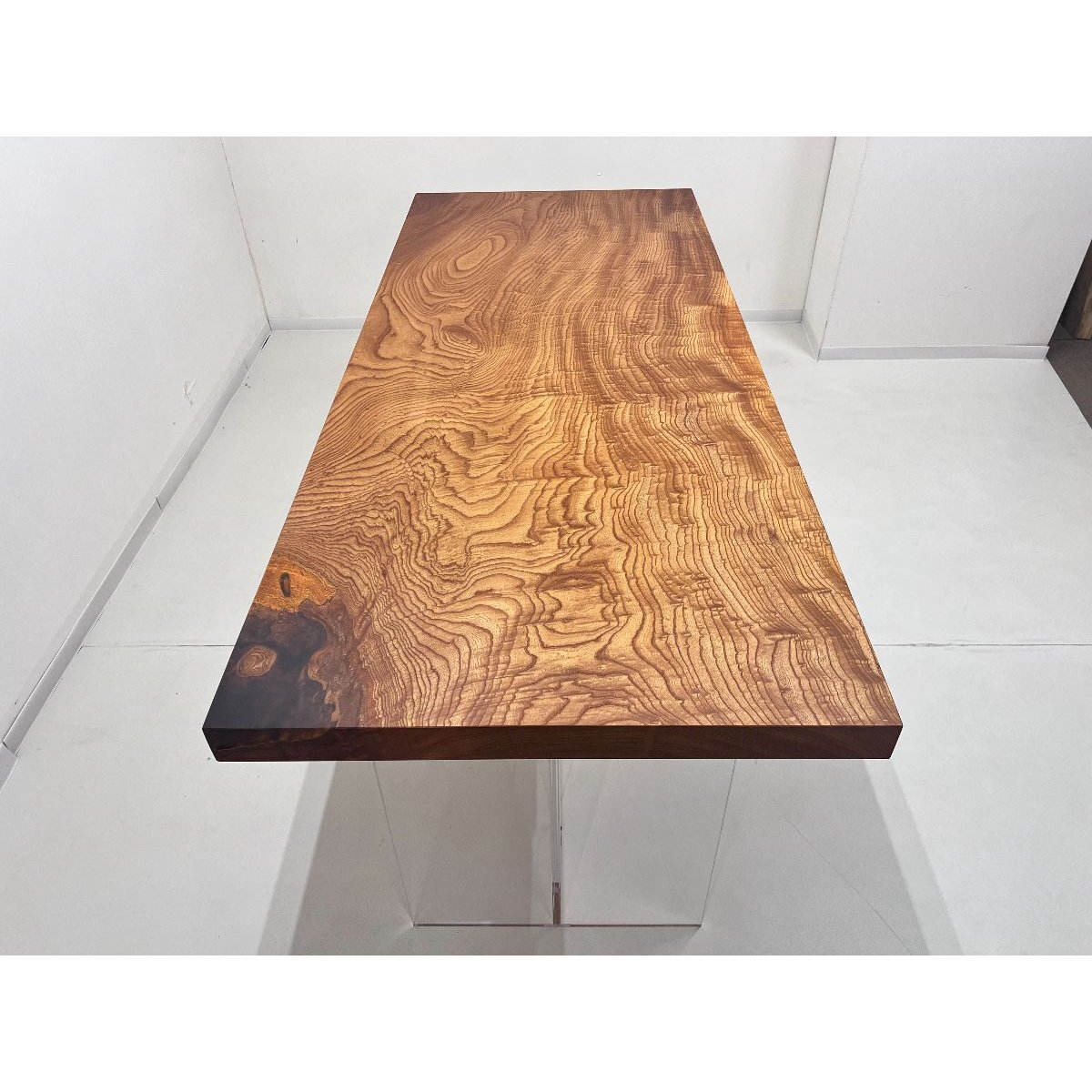 杢がとても美しい欅の一枚板。凹み部分はレジンを流し込み、お洒落なアクセントとしました。