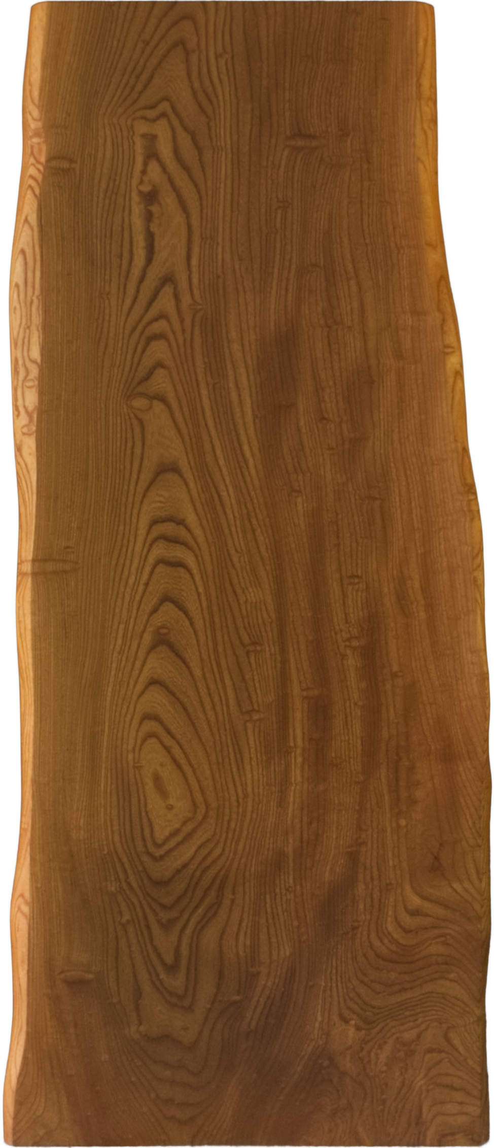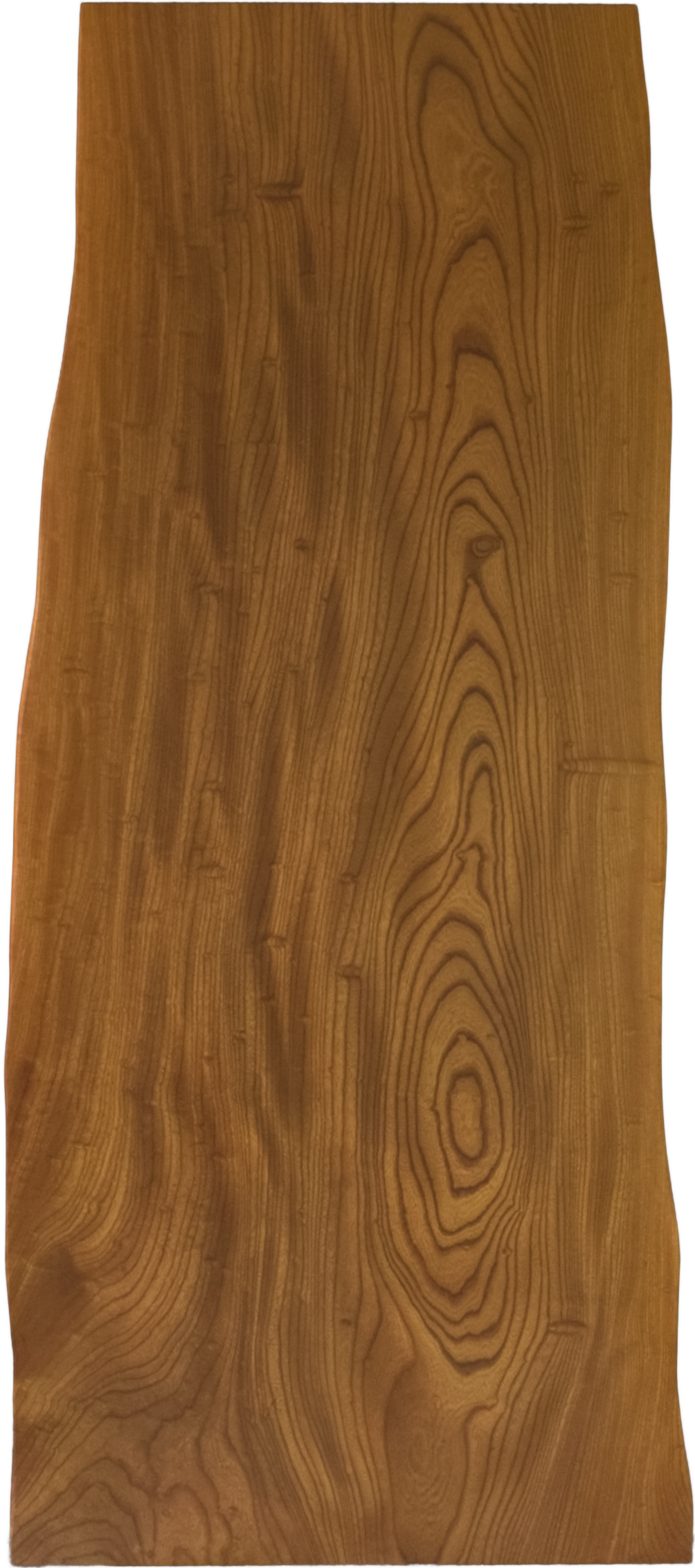 落ち着いたあめ色に浮かぶ、くっきりとした木目とその光沢が美しい、神代欅の一枚板です。味わい深い表情、ぜひご体感ください。