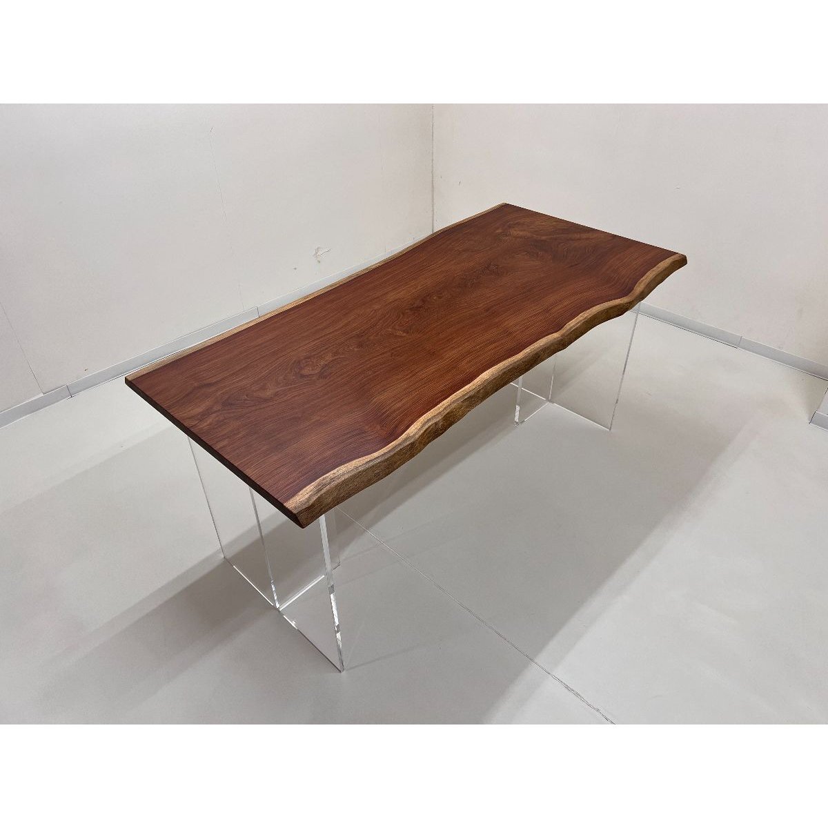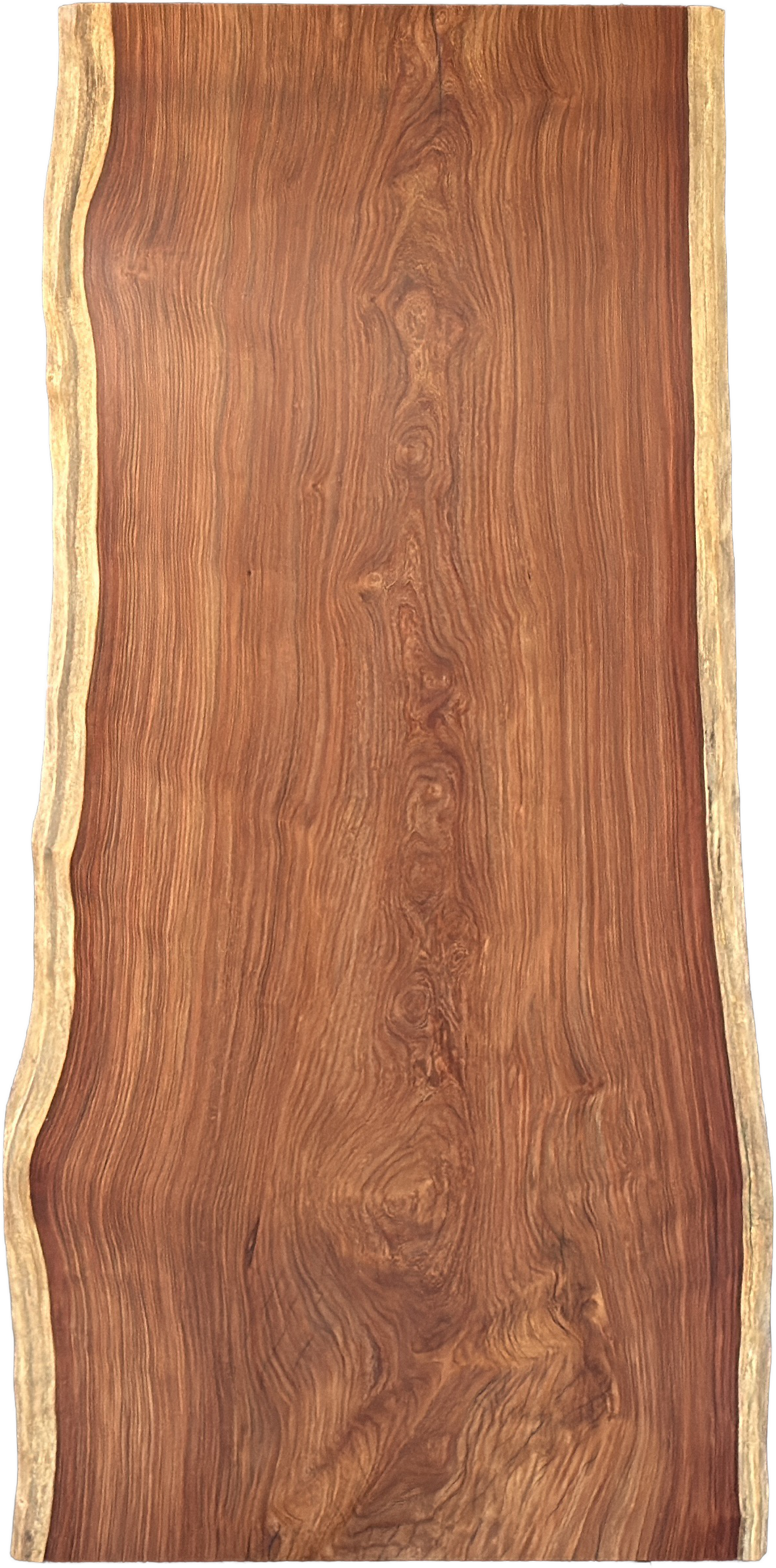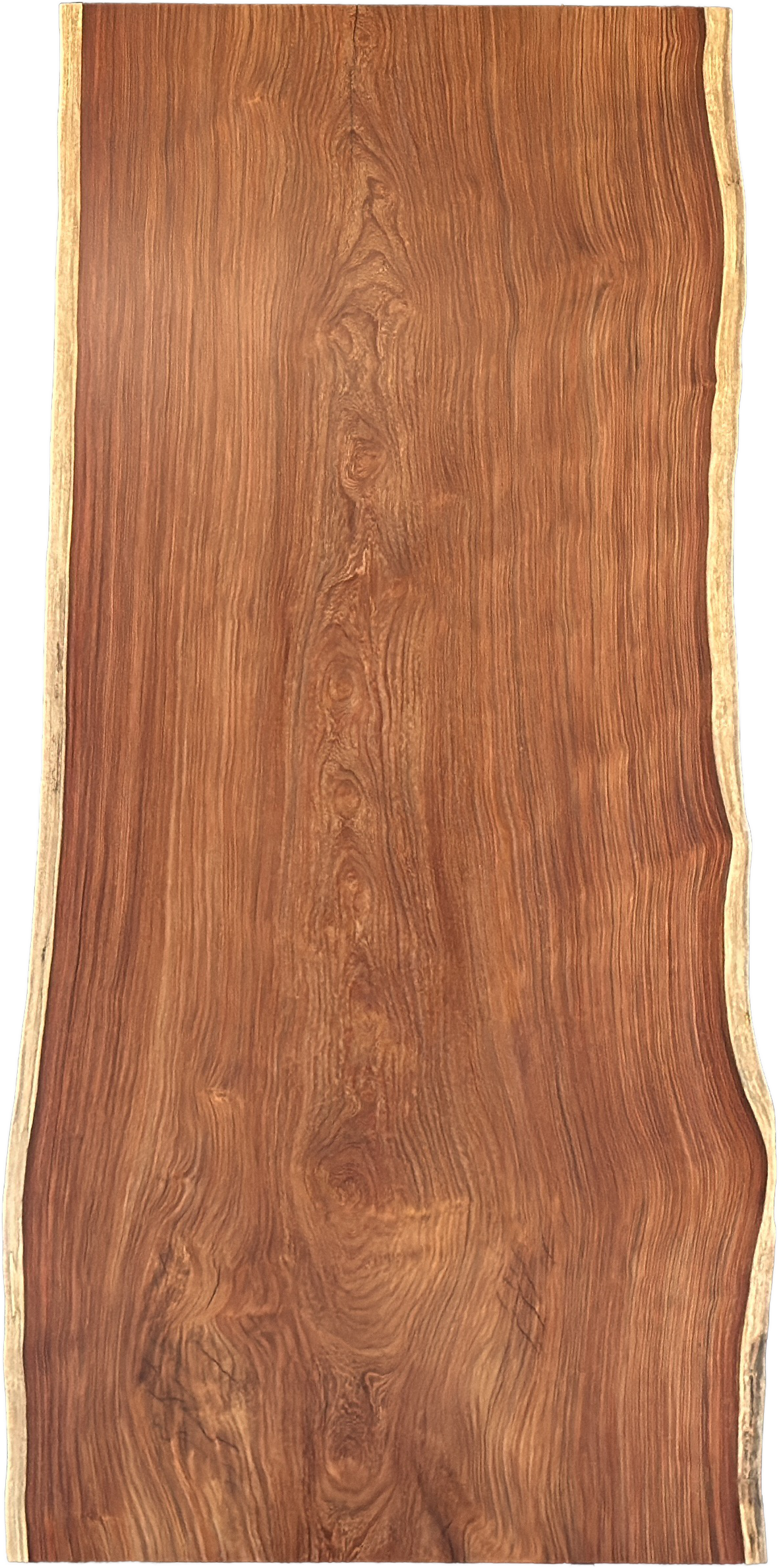 高級感のある赤みが特徴のカリンの一枚板です。耳とのコントラストが、より美しさを際立てます。杢も美しく、小さいながら存在感抜群です。