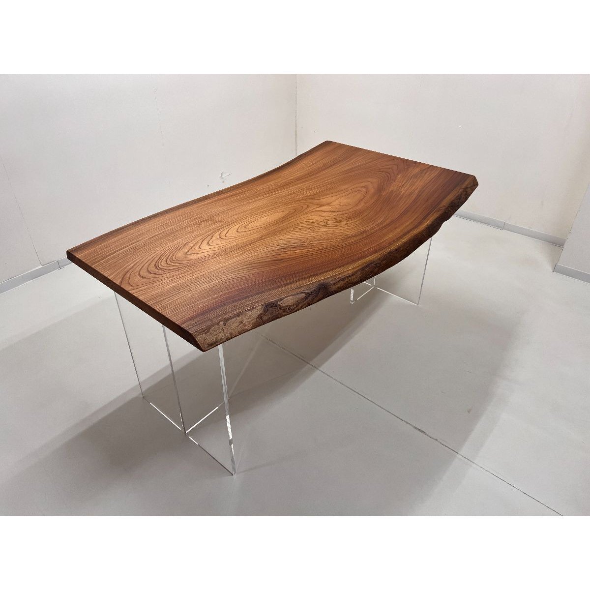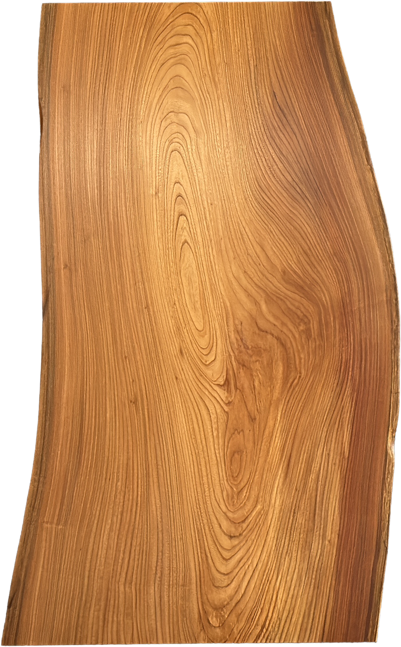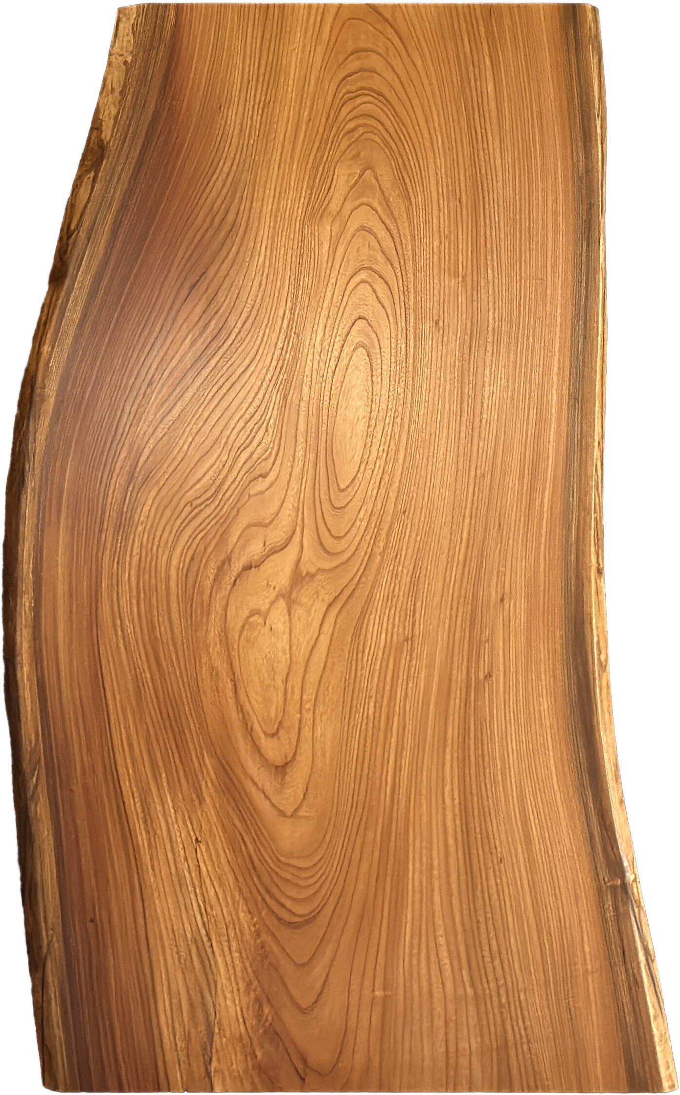 流線形が神秘的な欅の一枚板です。天然木ならではのグラデーションが美しく、高級感を感じられます。自然の耳を活かすことで、一点ものの特別感を感じて頂けます。