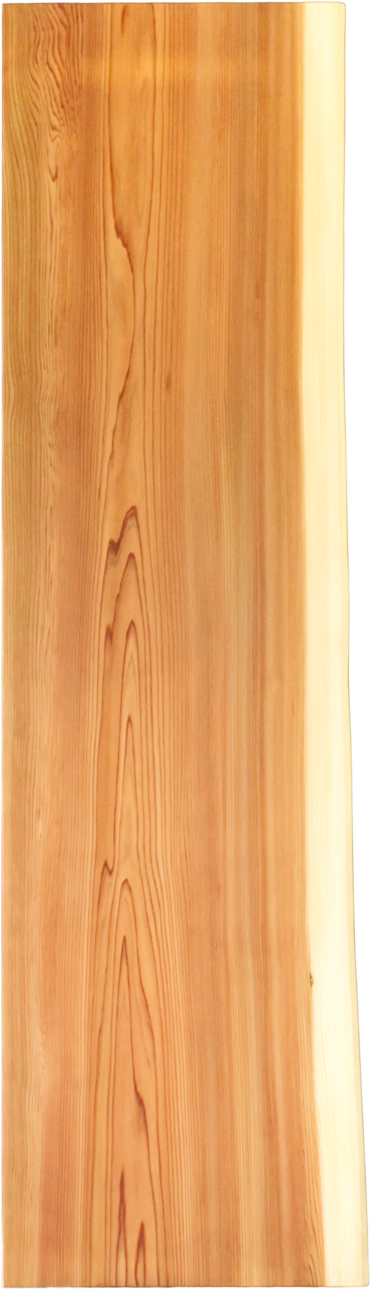 杉のカウンター天板です。すらっとしたシンプルながらも、自然の耳を活かした造形で、一枚板らしさを存分に楽しめます。カット加工もかのうなので、DIYにもお勧め。