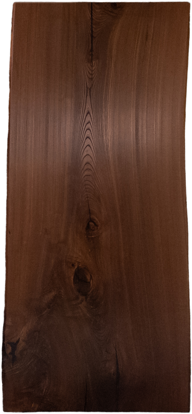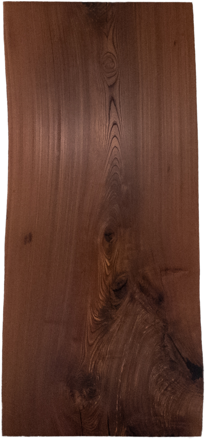 深い色合いが独特の雰囲気を生み出す、貴重な神代欅の一枚板です。複雑な杢や節も、この色合いの中では高級感を増すアクセントに。長い歴史を刻んだ銘木をお楽しみ下さい。