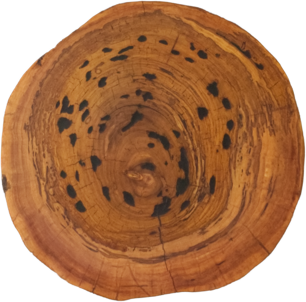 貴重な屋久杉を輪切りに加工しました。内部の穴はレジン加工で平らに慣らしています。