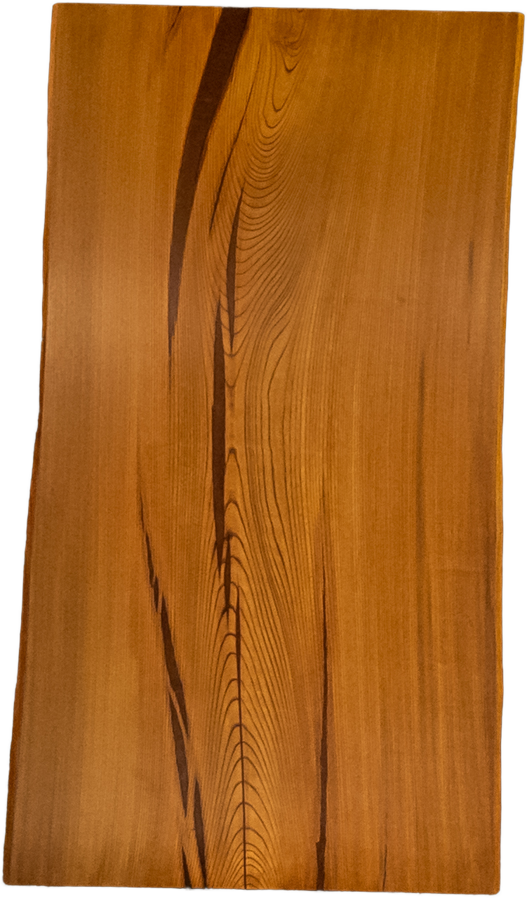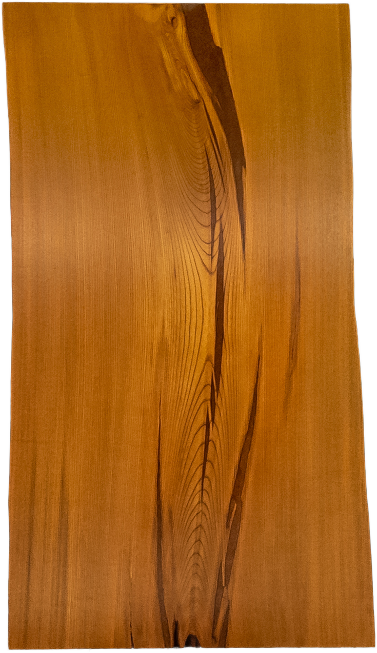 神代木のなかでも明るめの色合いで、他の家具とも合わせやすい欅(ケヤキ)です。割れをデザインとして隙間を埋め、自然の荒々しさを表現しました。