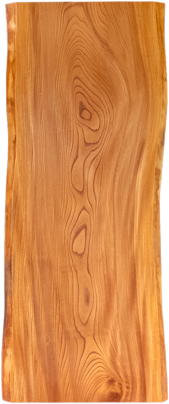 細身で美しい欅の一枚板です。枯山水のような木目が高級感を生み、どこから見ても絵になる一枚。しっかりとした厚みが重厚感を生み、所有欲を満たしてくれます。