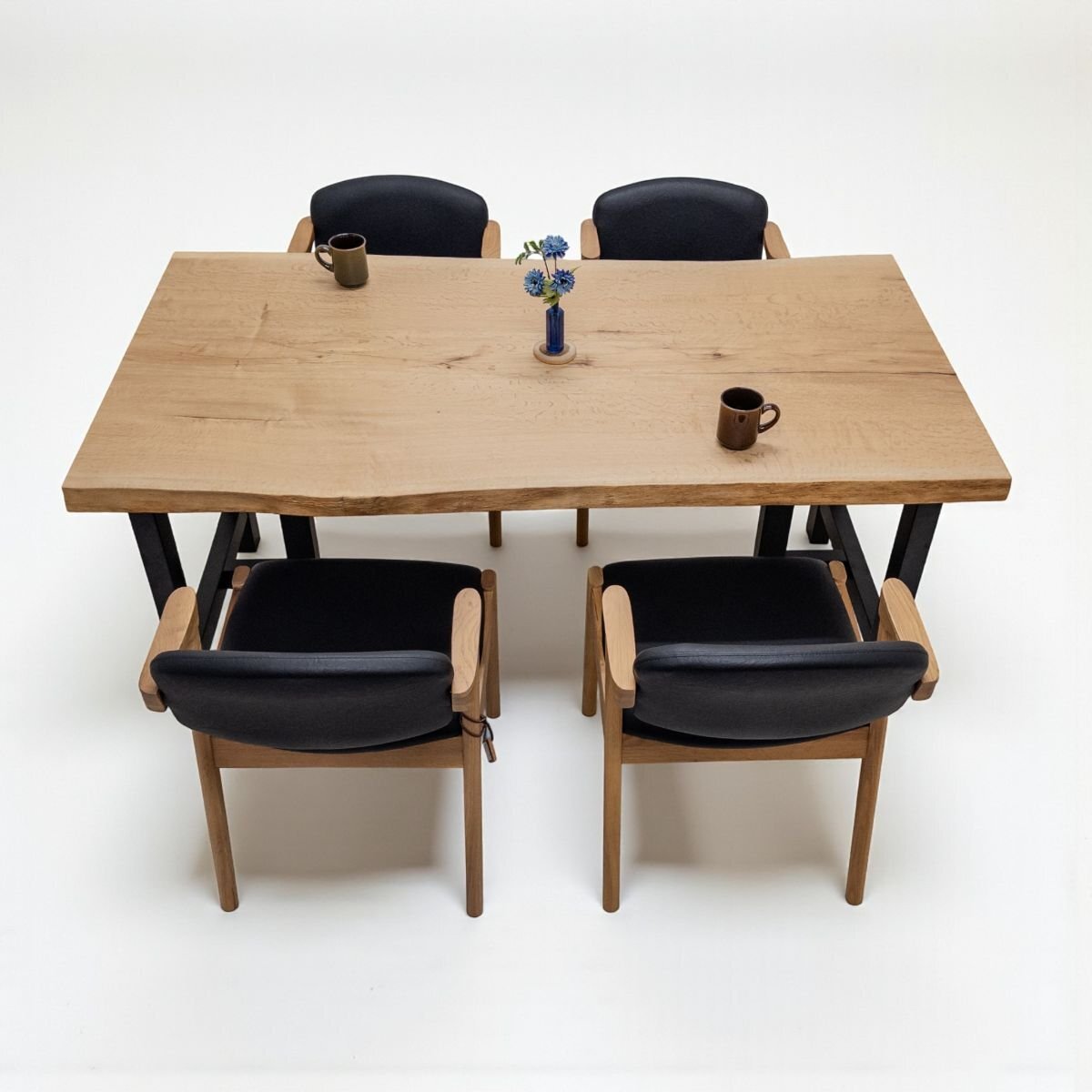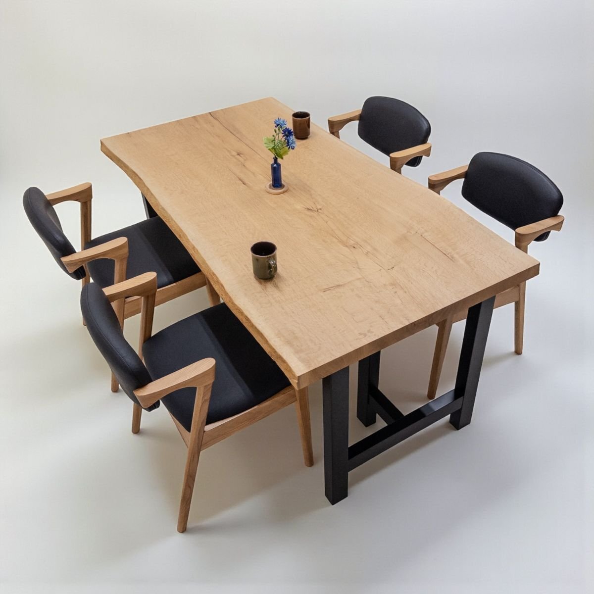 楢の醍醐味でもある虎斑(トラフ)が全体に散りばめられた趣のある一枚板。ずっしりとした重量は本物の木である証。強く丈夫な楢は、世代を超えて使える優秀な木です。家具にも多く使われる材で、他の家具との相性も抜群です。