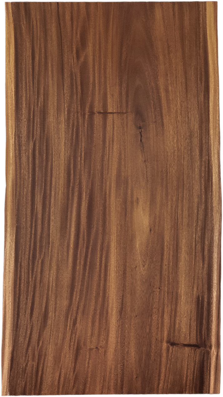 4人掛けにちょうどいいサイズのモンキーポッドの一枚板です。モンキーポッドの特徴的な色合いや縦じま模様が美しく、映える一枚です。白い耳が苦手な方のために、色を入れて暈しています。使いやすい形状で、実用性も申し分ありません。