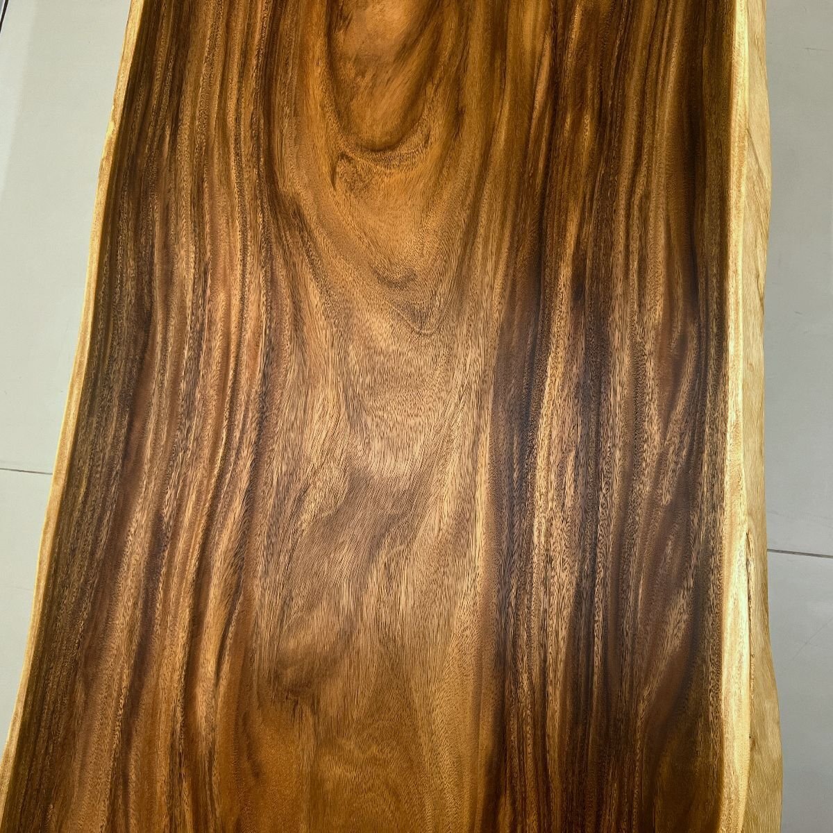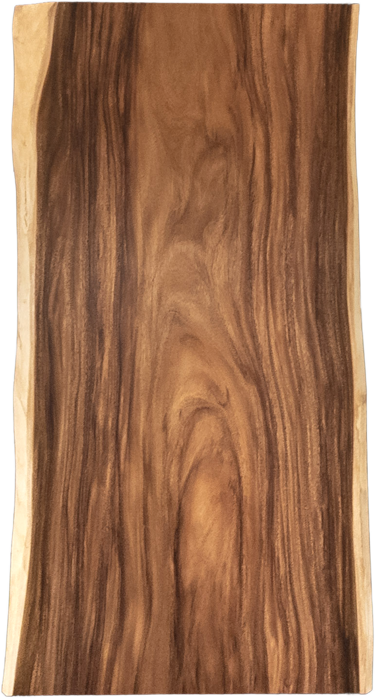 大人気の耳付きモンキーポッドの一枚板です。左右非対称の耳が天然木である事の証でもあります。中心から外に向かって濃くなるグラデーションは美しく、耳とのコントラストで締まって見えるので重厚ながらも重々しくありません。どんなお部屋にも合いやすく、使いやすい一枚板です。
