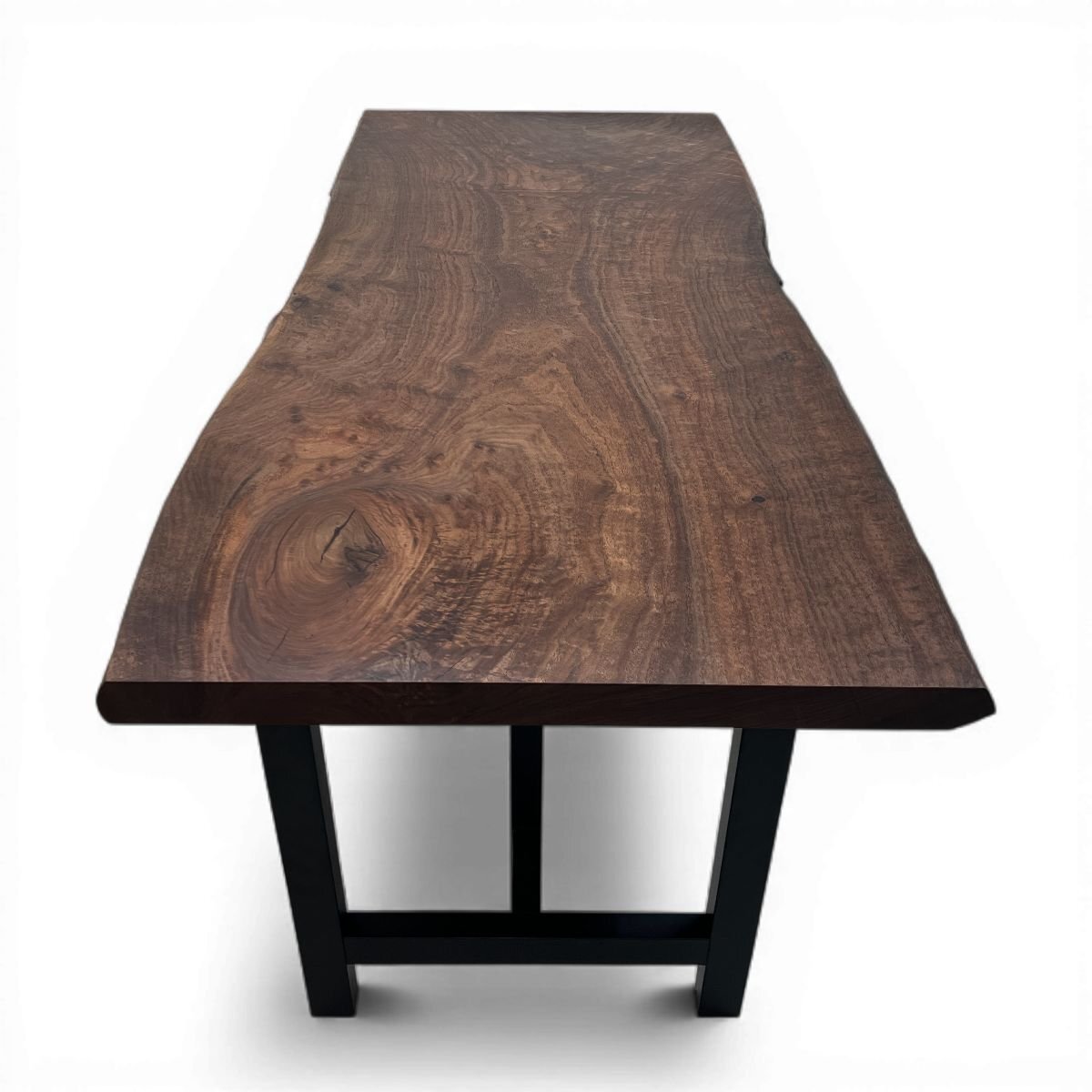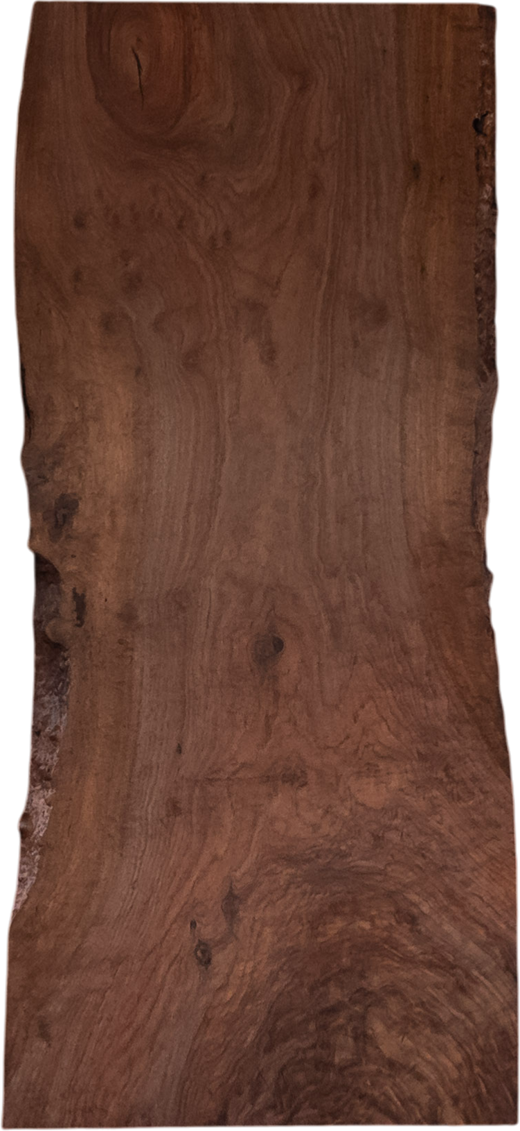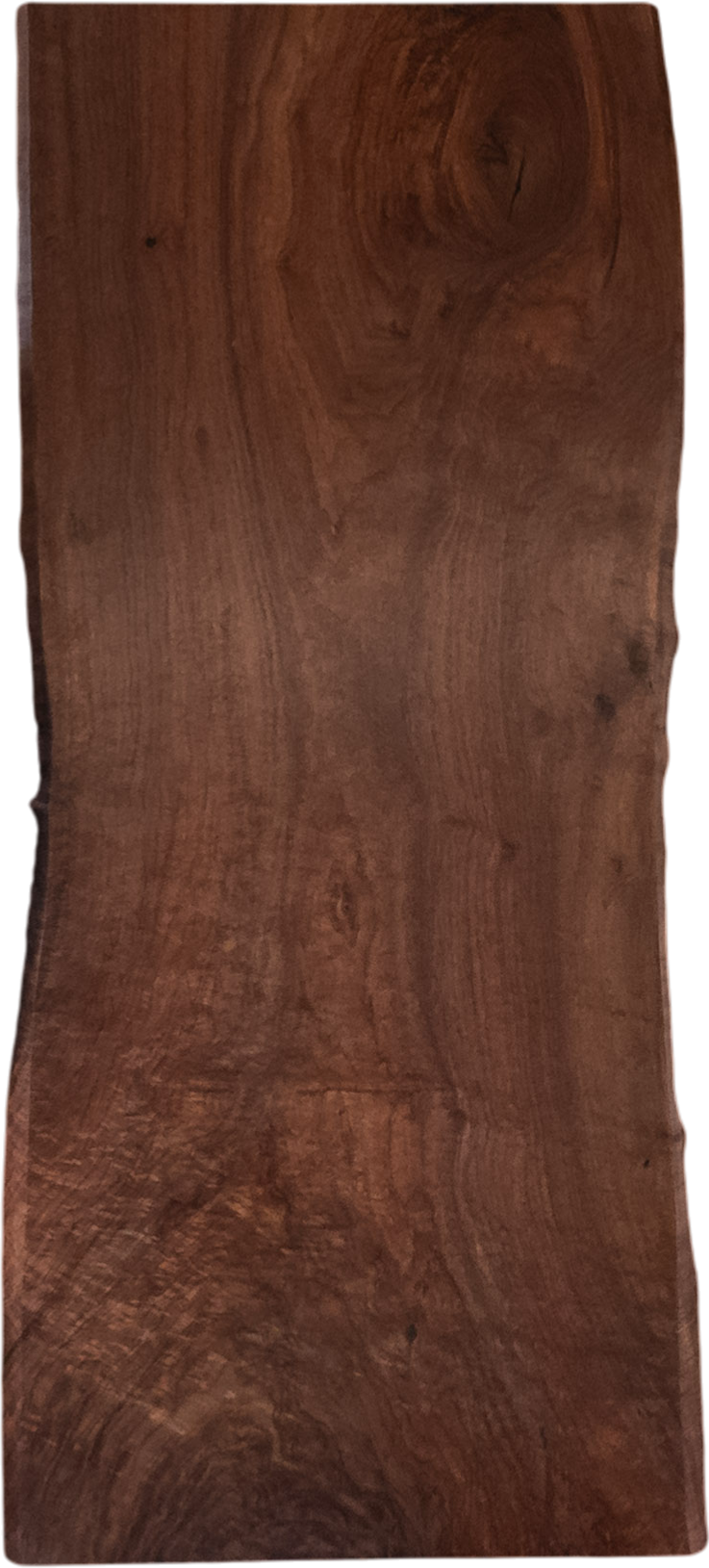 渦巻くような杢や、輝きを見せる縮杢が美しいバストゥーンウォールナットの一枚板です。